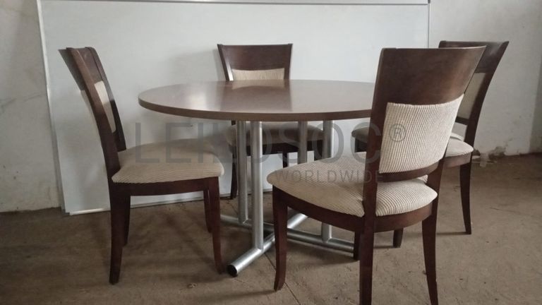 Uma mesa redonda e quatro cadeiras
