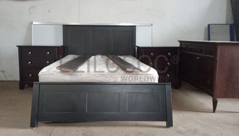 Uma cama, duas cabeceiras e uma cómoda