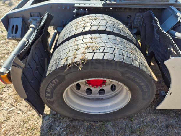 Veículo trator pesado de mercadorias com vidros e retrovisores elétricos, com cama, rodado duplo traseiro.