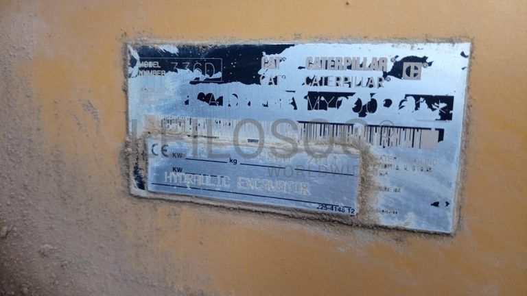 Escavadeira giratória de marca Caterpillar, modelo 330 CLN, série nº MYG00261, com cerca de 6915 horas de trabalho.