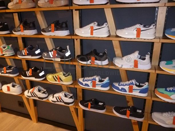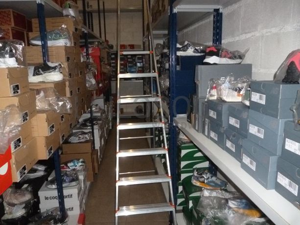 - Lote de existências composto por: 106 pares de meias, 65 pares de meias (pézinhos), 175 pares de “HAPPY SOCKES”, 17 bolsas de cintura, 5 mochilas, 9 gorros, 21 chapés, 223 peças de vestuário, 1.068 pares de sapatilhas "NIKE, REEBOK, PUMA,CONVERSE, NEW BALANCE, SAUCONY, LE COQ SPORTIF, ON, ADIDAS, VANS, SANJO, RALPH LAUREN, FRED PERRY, ASICS, LACOSTE, FILA”, palmilhas, 16 carteiras “SECRID”, 11 “CROCKS”, atacadores, produtos "CREP PROTECT".