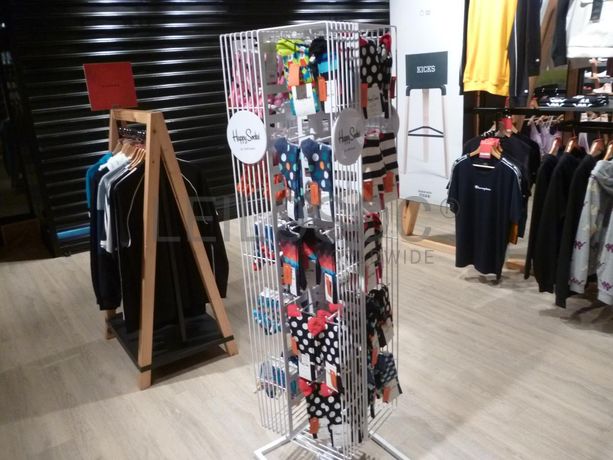 - Monitor TFT “LG”, POS com caixa para dinheiro, 2 impressoras de talões, 2 móveis de apoio, 6 expositores de pendurados, 2 escadotes, 16 módulos de estante em dexion, secretária, aspirador, máquina de passar a ferro, mini frigorífico, micro-ondas, mini aparelhagem, impressora, 3 bancos, tablet “LENOVO”, holofotes LED, cabides, formas para sapatos de homem, mulher e criança.