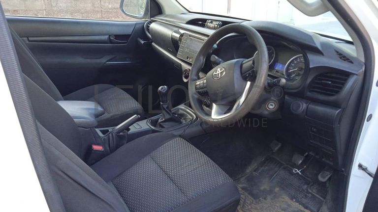Uma viatura marca Toyota, modelo Hilux, ano de fabrico 2018, com cerca de 58907km, caixa manual, operacional combustível diesel, pneus marca Dunlop, cabine simples