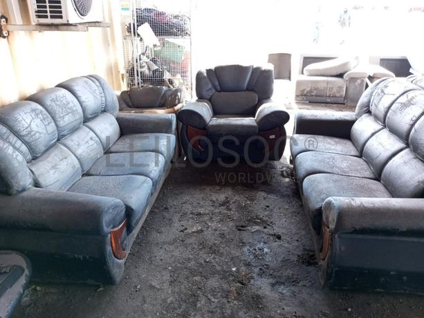 Um jogo de sofás de napa dois com três lugares e um de um lugar.