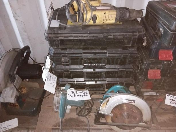 Duas serras elétricas, uma serra circular 00417076, 14306378 e quatro martelos eléctricos de marca DeWalt SN00106065,00107086,00106991,00105978.