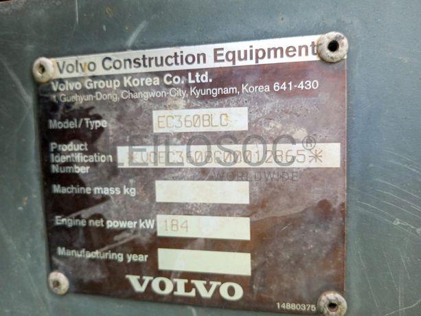 Uma escavadeira hidráulica marca Volvo, modelo EC360 BLC, SN: VCEC360BC00012865.