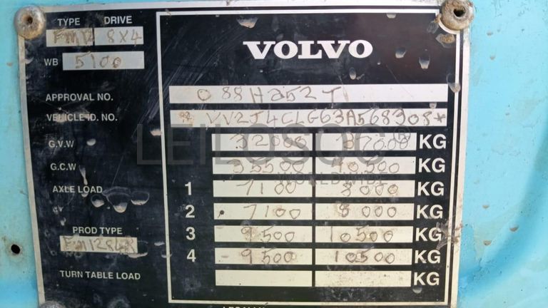 Camião de marca Volvo 8x4, modelo FM 12380-5,90M Ano=2003, chassi YV2J4CLG63A568308