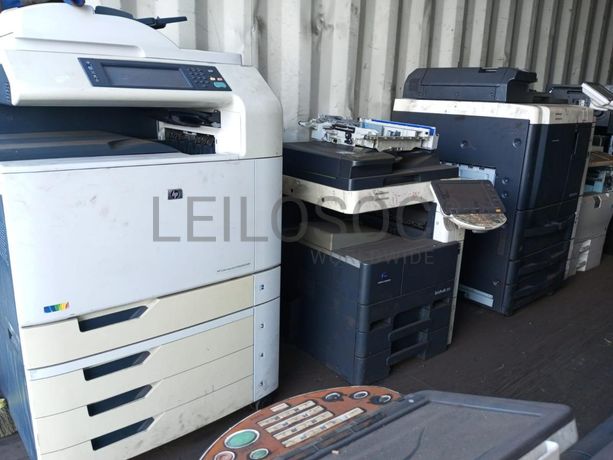 Três impressoras (HP OfficeJet 7612, Laser Jet pro 400MPM425, Laser Jet Color CP2525).