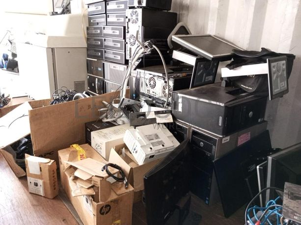 Trinta e dois processadores da marca (HP elitedesk, Compaq), sete monitores da marca (Dell,HP,Acer), sete teclados , um projector da marca Acer, uma caixa cheias de mouses, cabos de corrente, VGA,carregadores avariados de laptops.