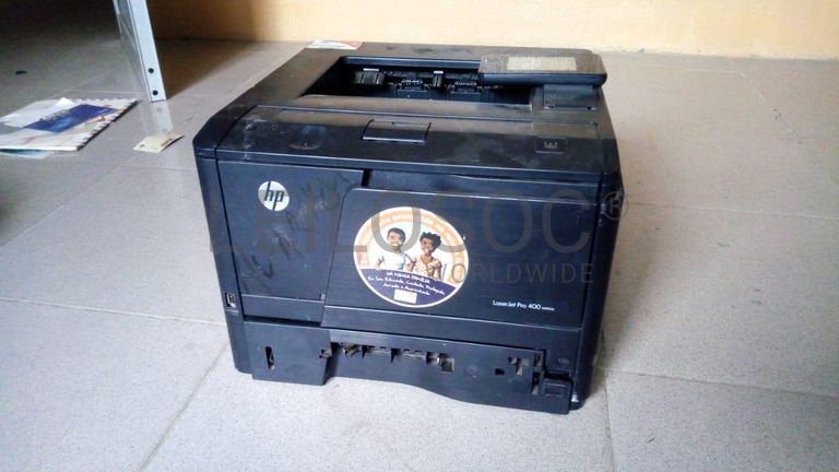 Uma impressora de marca HP Laserjet Pro 400.