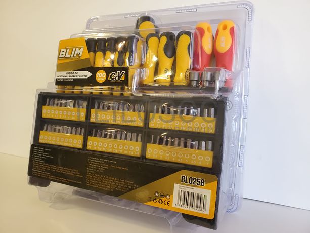 Conjunto de 100 ferramentas, composto por várias chaves de fendas, philips, pontas e pontas com chave de caixa, chaves de precisão.