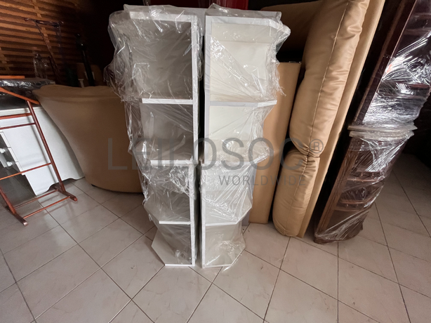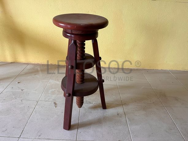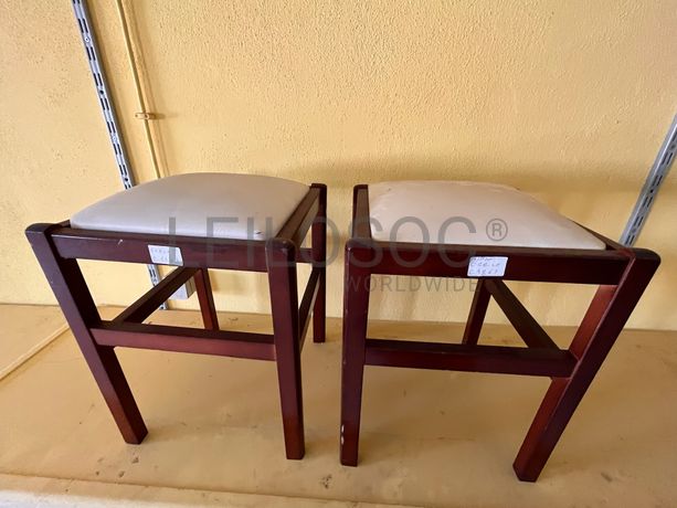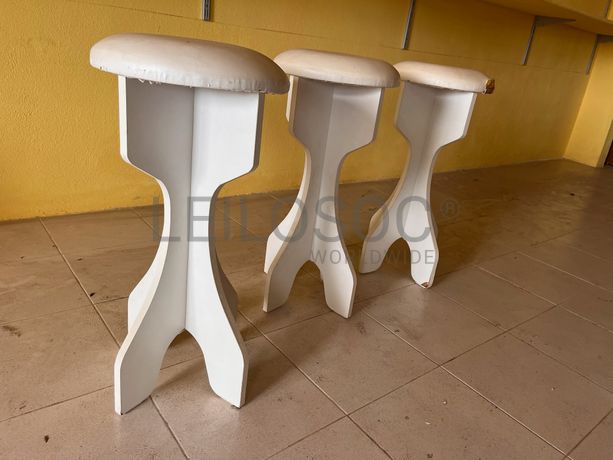 - 3 Bancos redondos de madeira branca, com assento em napa (potencial para restauro)