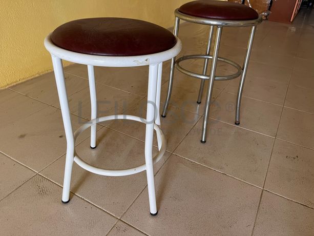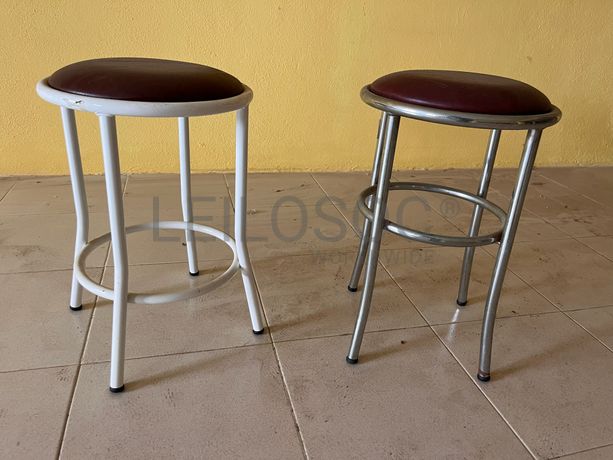 - 2 Bancos redondos metálicos, com assento de napa castanha (potencial para restauro)