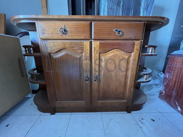 - Móvel de madeira clara, com 3 gavetas, sem puxadores