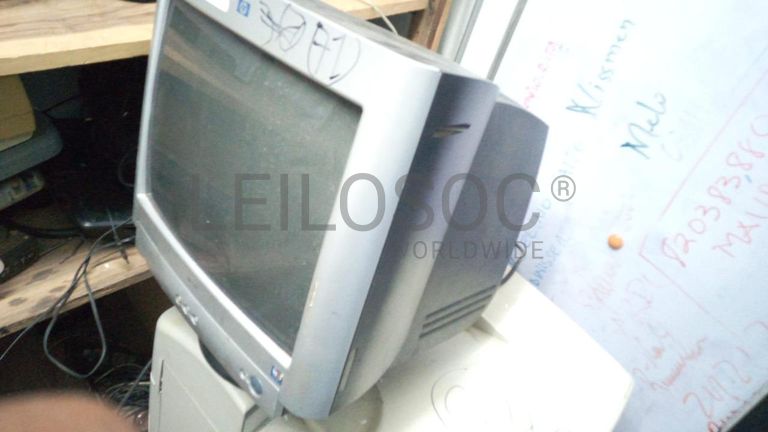 Um monitor avariado de marca HP 9500.