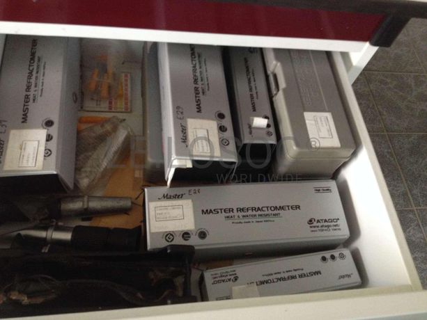 o Acessórios de tubos de ensaio, provetas, funis de vidro, pipetas graduadas · Leitor de PH portátil · Ponte Rolante · Báscula de Pesagem.