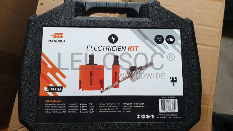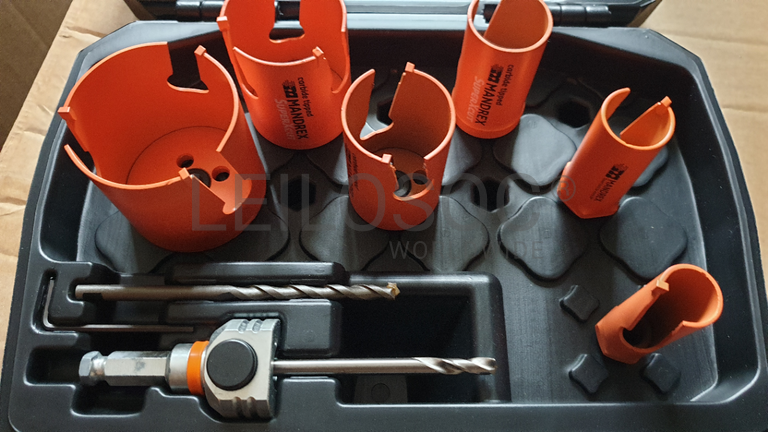 Os conjuntos de serras copo Mandrex estão disponíveis em caixas portáteis profissionais equipadas com o interior da mais alta qualidade.