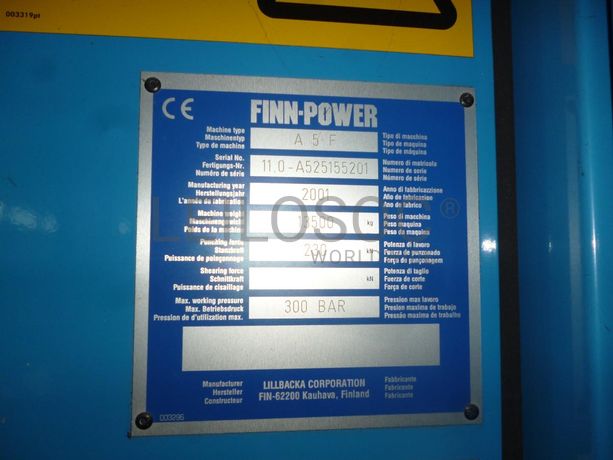 - Máquina de corte de chapa por arrombamento FINN-Power, máquina A5F, série 110-A525155201, do ano 2001