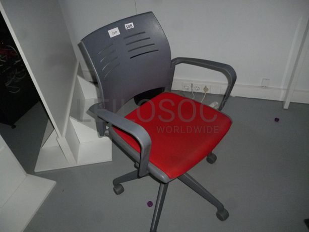 - Cadeira com rodízios de cor cinza e vermelho