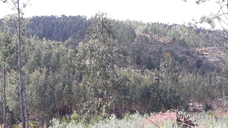 - Terreno com eucaliptos · Tem construído um pequeno casebre · Área Total de 2.830 m² · Acesso A23, N244 e Estradão do Caratão · Sito em Lugar de Oliveiras do Moinhoo · GPS: 39.585833, -7.965