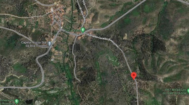 - Terreno em zona de floresta com 8.600 m² · A 5 minutos de povoação · Acessos A23, N244 e caminho · Sito em Lugar de Nave · GPS: 39.595303, -7.986948