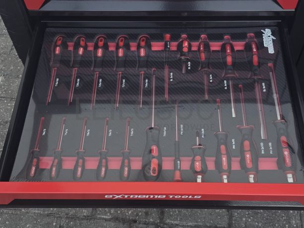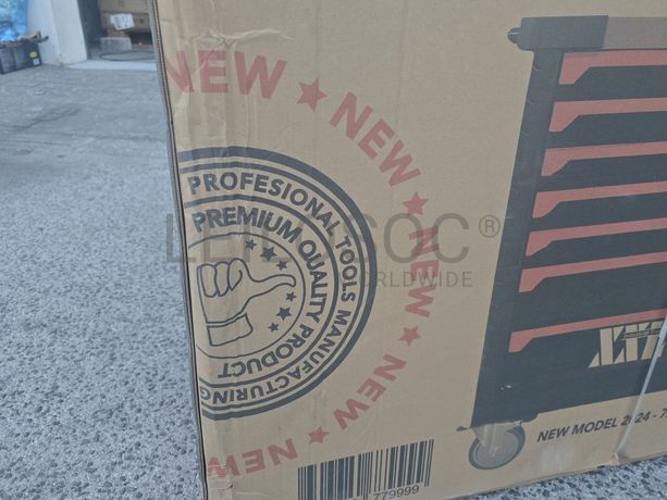 Carrinho de ferramentas XXL, profissional, versão Premium, com 7 gavetas todas com ferramentas, porta lateral, duas chaves, 4 rodízios.