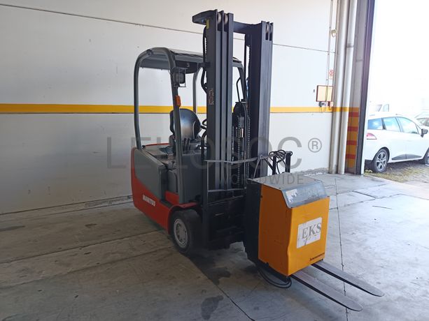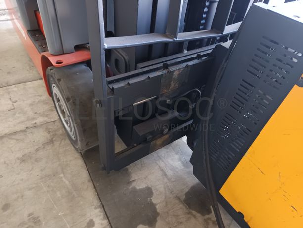 Empilhador elétrico com deslocamento lateral, altura da torre de 2150mm, altura máxima de 4800mm, com torre triplex.