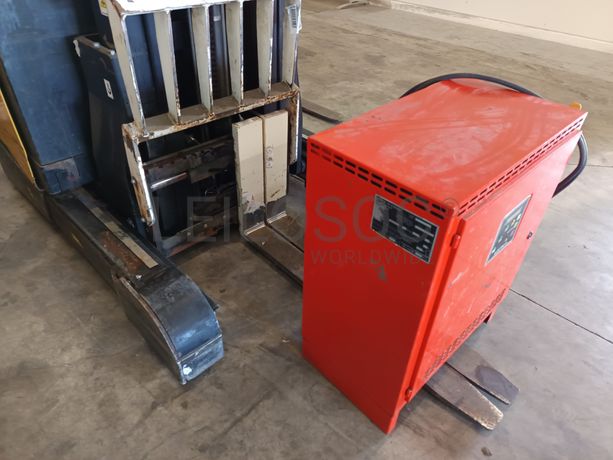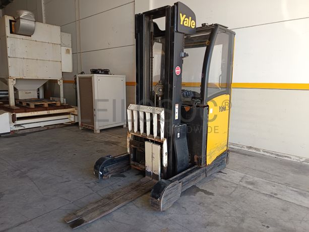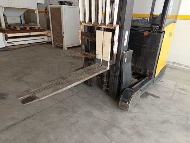 Empilhador retrátil elétrico com altura da torre de 2350mm, altura máxima de 5400mm, com torre dupla, capacidade 1400kg.
