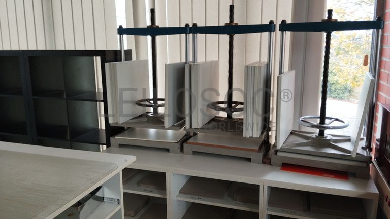 - 3 Prensas de blocos manuais a ar comprimido e guilhotina manual PMA 43cm;