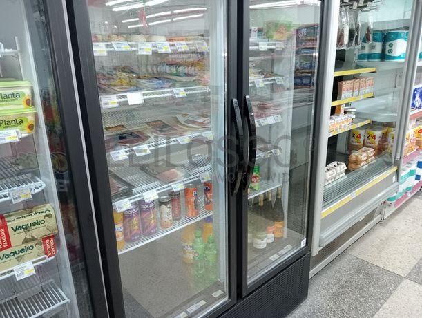 - Expositor com portas em vidro;