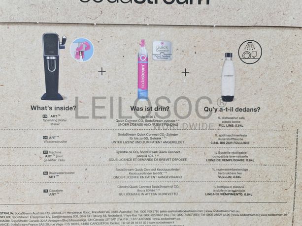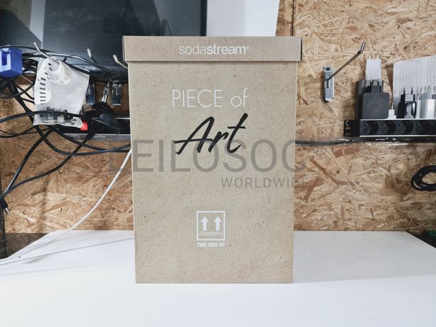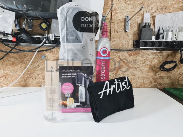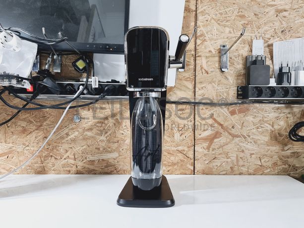 Máquina Sodastream Piece of Art, para fazer água com gás, Preta, com cilindro de CO2 e garrafa reutilizável e avental personalizado.