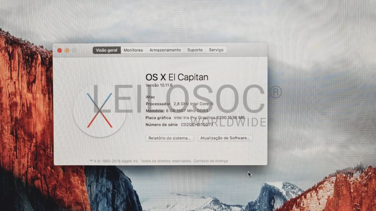 Computador Apple iMac A1418, All In One, com processador Intel Core i5, memória RAM de 8GB, disco HDD de 1TB com sistema, ecrã Full HD integrado de 21.5" e sistema operativo macOS X El Capitan.