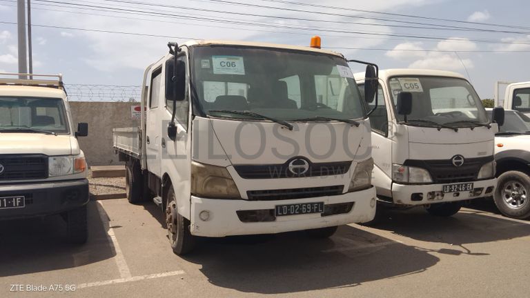 Viat. Pesadas Caixa Fixa Cabine Dupla da marca HINO, modelo 300 DC, matrícula LD-02-69-FL do ano 2013, com cerca de 414604 Km.