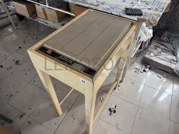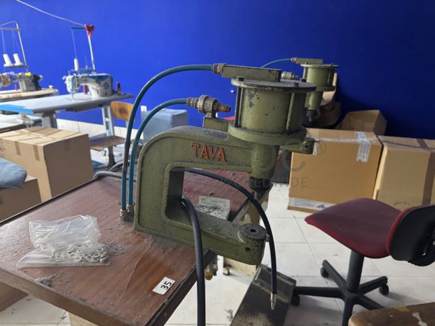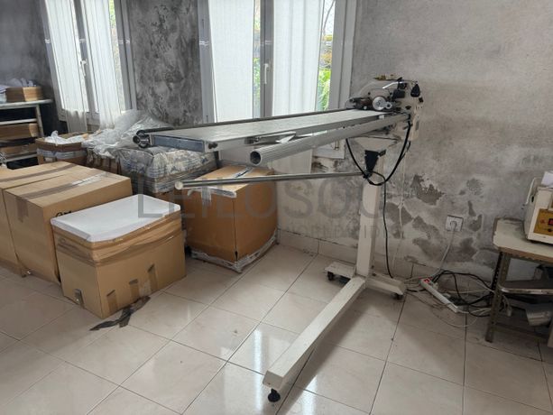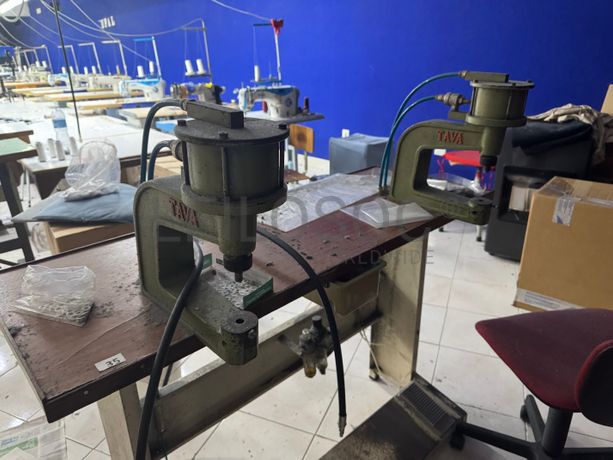 • Prensa de entretelar, tábua industrial de passar a ferro, caldeira com 2 ferros, detetor de metais;