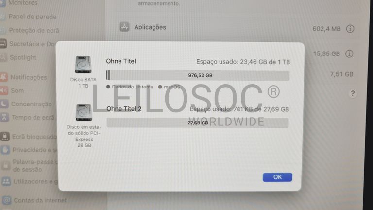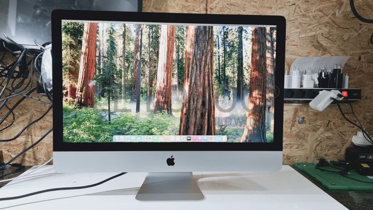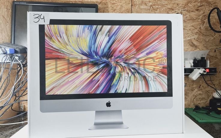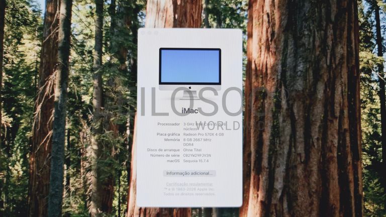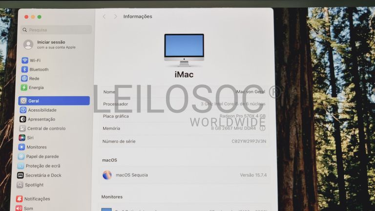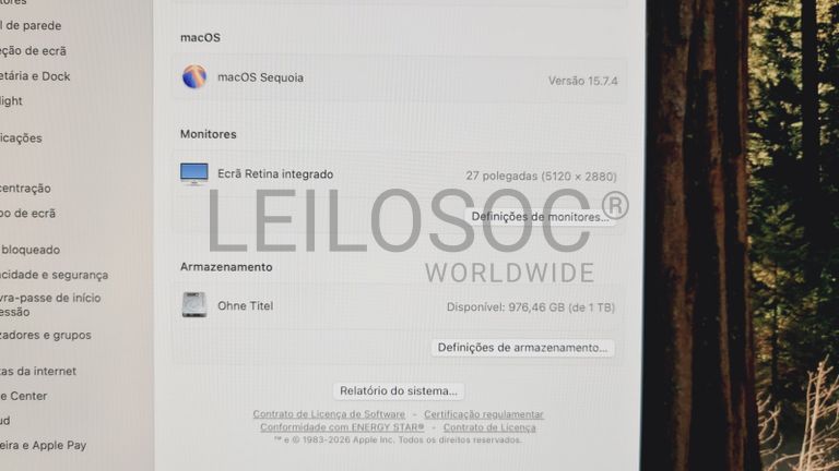 Computador Apple iMac A2115, All In One, com processador Intel Core i5, memória RAM de 8GB, disco de 1TB HDD e disco adicional de 32GB SSD NVME, placa gráfica Radeon Pro 570X de 4GB e ecrã retina de 27"