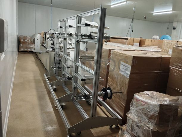 Linha de produção automática de máscaras faciais da marca "ACOS GRAF", modelo "FF2" com o n.º de série 26210206, ano 2021.