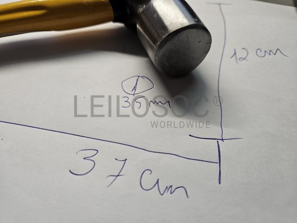 Martelo de pena redonda em aço, com cabo de PVC, martelo profissional, com 37 cm de comprimento, 12 cm de largura e 35 mm de diâmetro.