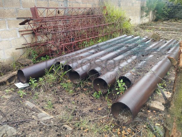 Cinco tubos metálicos e nove armação para vigas de concreto