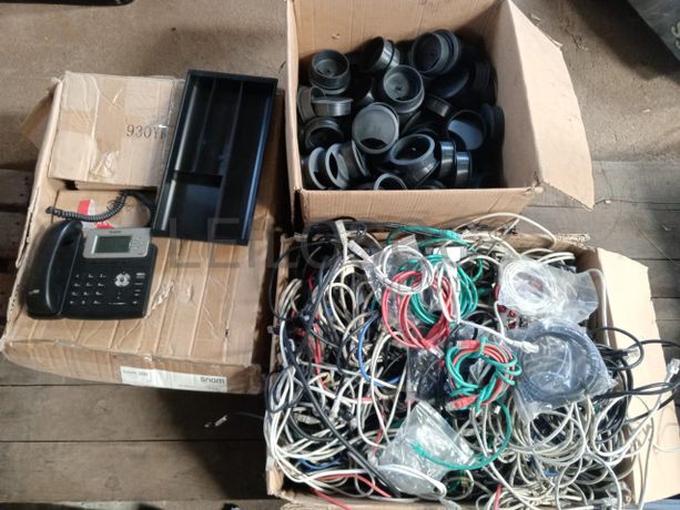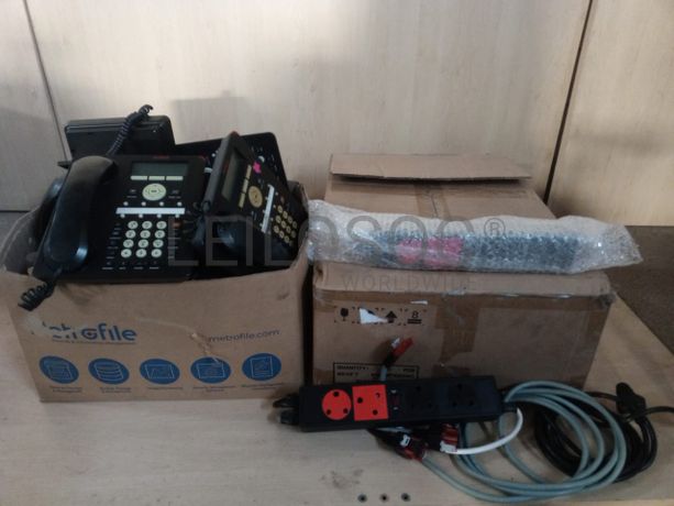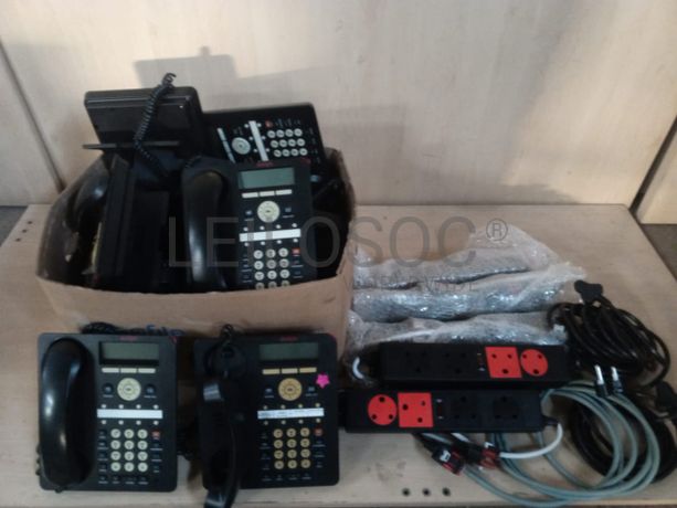 Uma caixa de cabos, uma caixa de tampas para secretaria, quinze separadores e vinte telefones