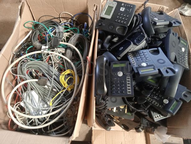 Uma caixa de cabos e cinquenta telefones fixos.