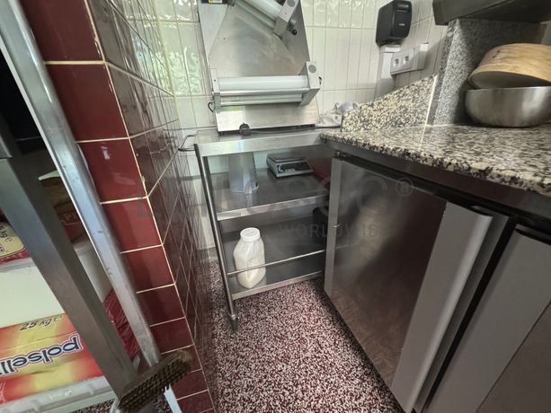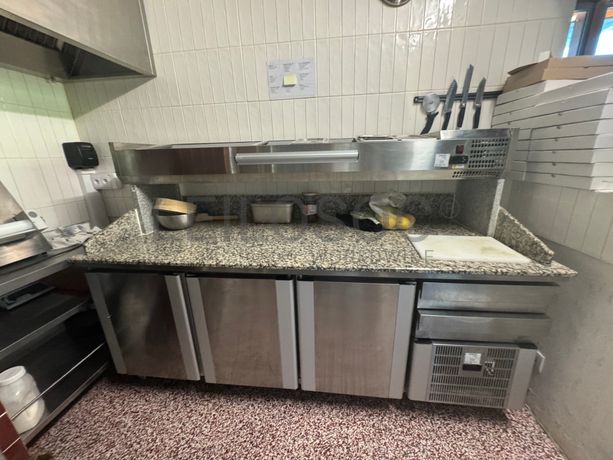 - Bancada de trabalho com expositor de artigos e refrigeração com 3 portas;
