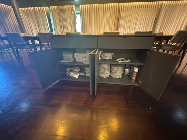 - 2 Móveis de madeira com várias caixas metálicas;