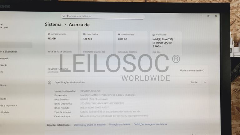 Computador NUC Mini, com processador Intel Core i3-7100U, memória RAM de 8GB, disco de armazenamento de 128GB SSD M2, Windows 11 PRO, com monitor Samsung incluído, teclado e rato.