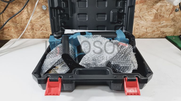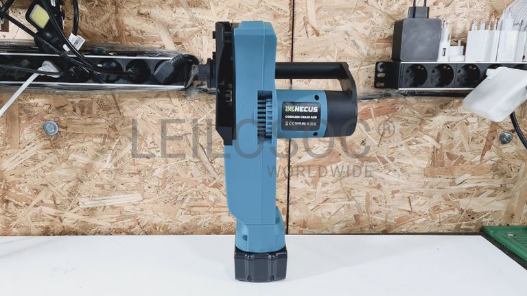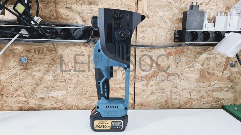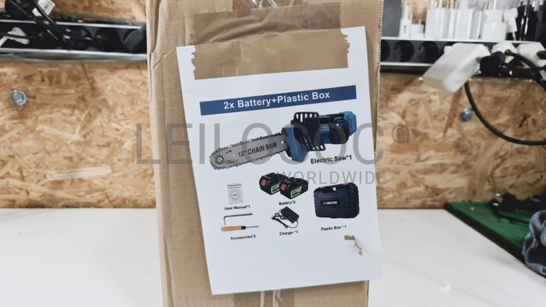 Motosserra elétrica de gama profissional, sem fios, de corpo robusto e com pega de suporte, com lâmina de 12 polegadas, com carregador e duas baterias de alta capacidade, com compatibilidade para as máquinas Makita.