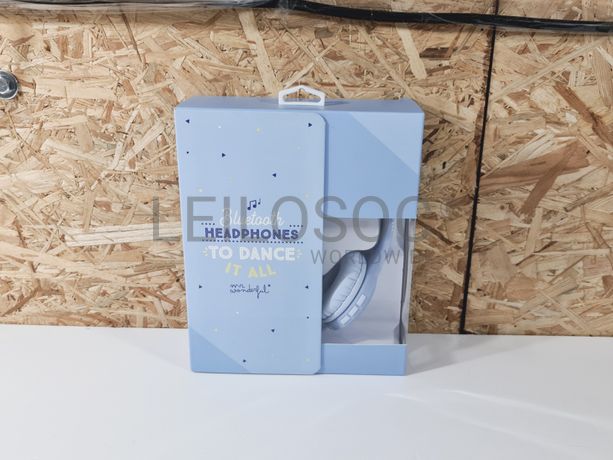 Headsets Bluetooth Mr. Wonderful, modelo “Is a Song”, com botões de controlo de volume e música e porta micro USB para carregamento.