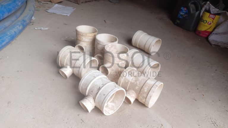 Vinte e nove peças tipo T reduzido de 110mm x 110mm x 50mm de dimensão.