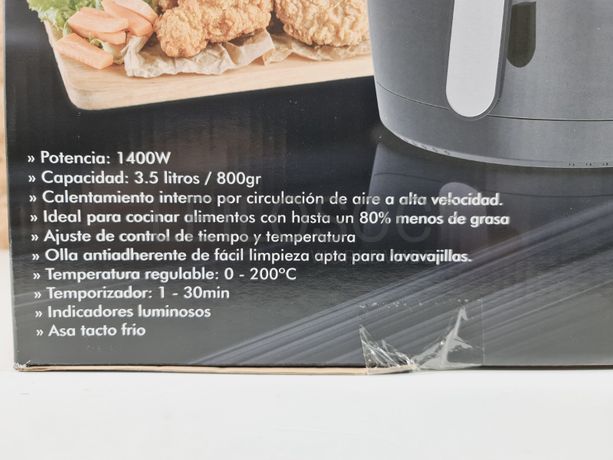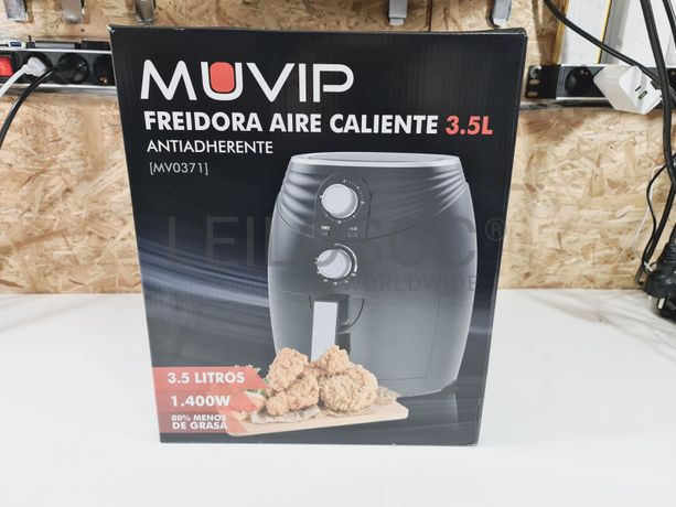 Fritadeira de Ar / Airfryer Muvip de 3.5L litros / 800gr, de 1400W, 220-240V. Com panela antiaderente, com possibilidade de ajustar a temperatura até 200ºC e temporizador até 30min.