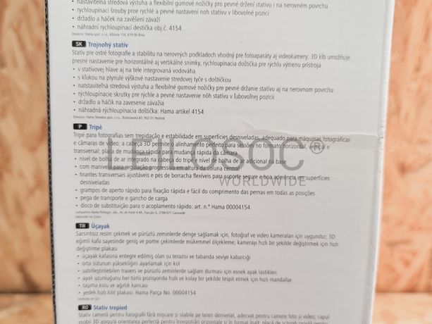 Tripé Hama Star 63, adequado para máquinas fotográficas e câmaras de vídeo, com cabeça 3D para o alinhamento em formato horizontal, vertical e transversal, placa de mudança rápida da câmara, com nível na base e na cabeça do tripé, manivela de regulação progressiva em altura na coluna central, pés de borracha flexíveis, tirantes transversais ajustáveis, grampos de aperto rápido para ajustar altura das pernas e pega.