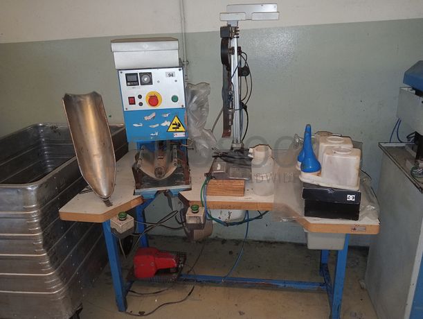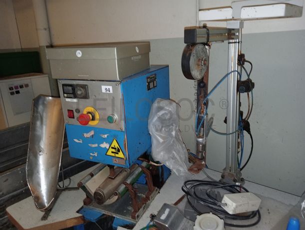 Máquina de colar tópos com máquina de dar cola