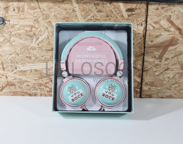 Headsets Mr. Wonderful, modelo “You Rock”, com cabo de áudio Jack 3.5mm de 1.5 metros.